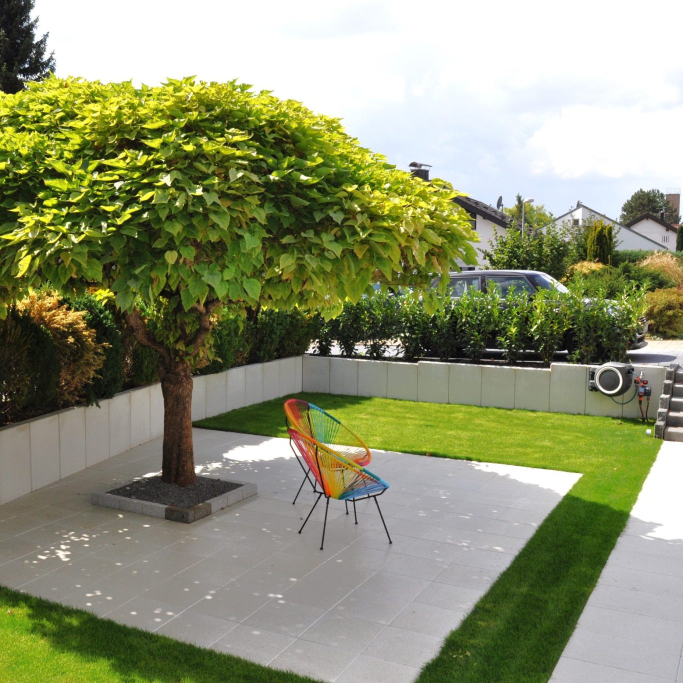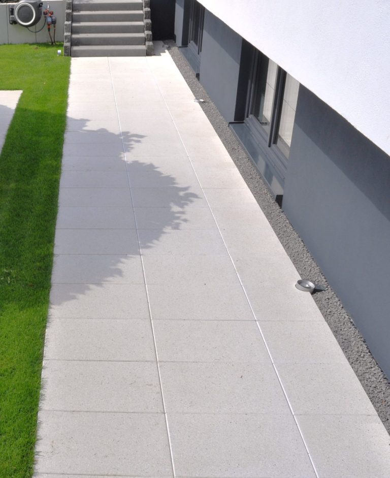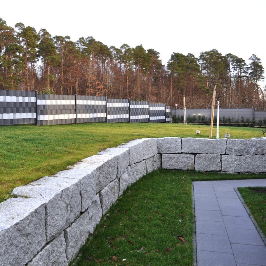 Es entstand eine Außenanlage aus einem Guss, von der Einfahrt über die Terrasse bis hin zu Mauern und Zaunanlage.