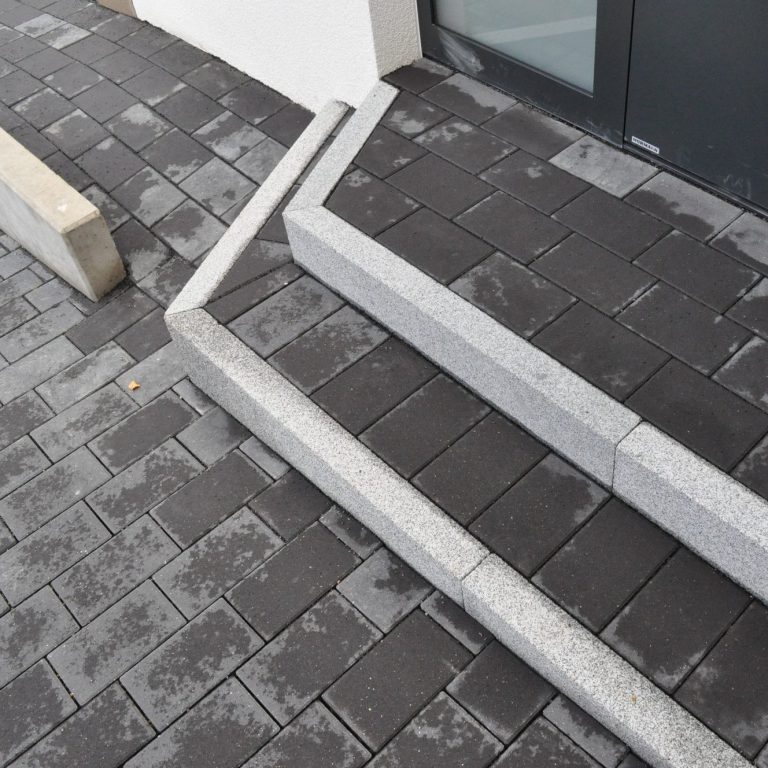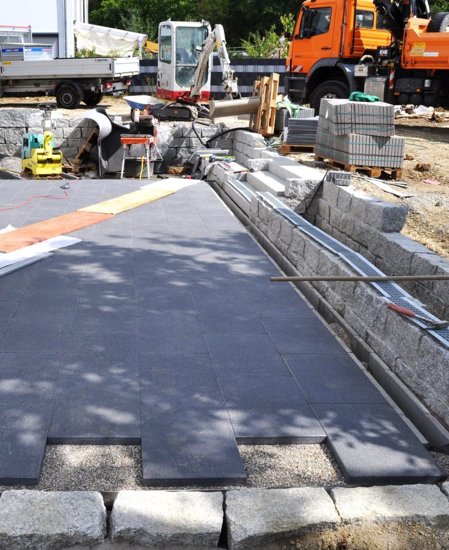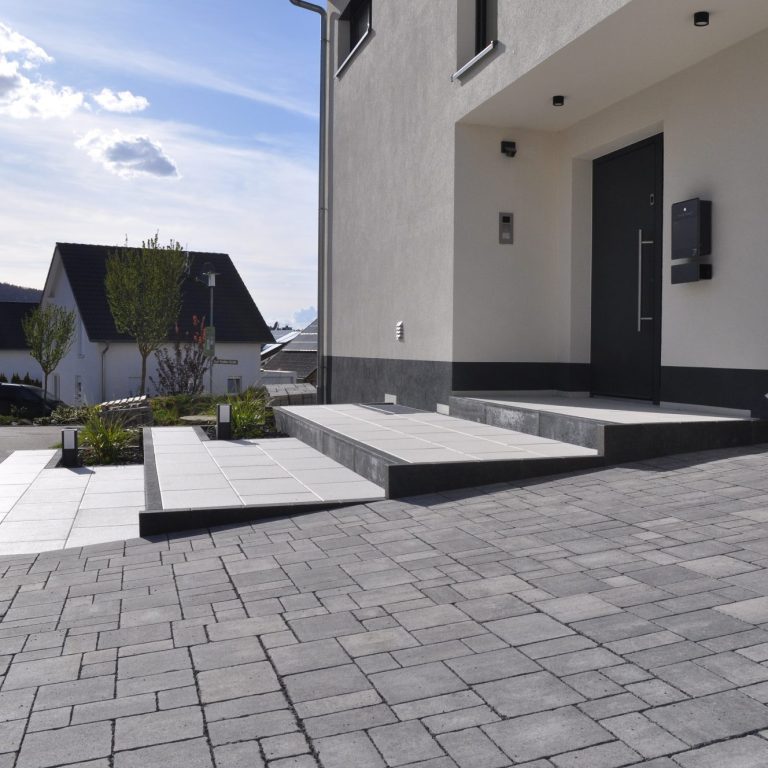 Die präzise Verlegung und die abgestimmten Materialien schaffen eine langlebige und zugleich elegante Einfahrt, die sich harmonisch in die Umgebung einführt.