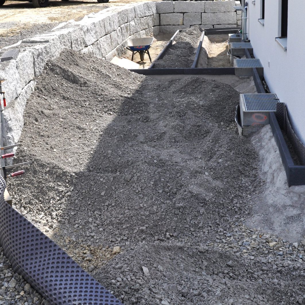 Dieses Projekt umfasste die komplette Außenanlagengestaltung rund um das Wohnhaus inklusive Natursteinmauer, Sichtschutz, Poolbau und Rasenflächen. Alle Arbeiten wurden individuell auf das Grundstück und die Wünsche des Kunden abgestimmt.